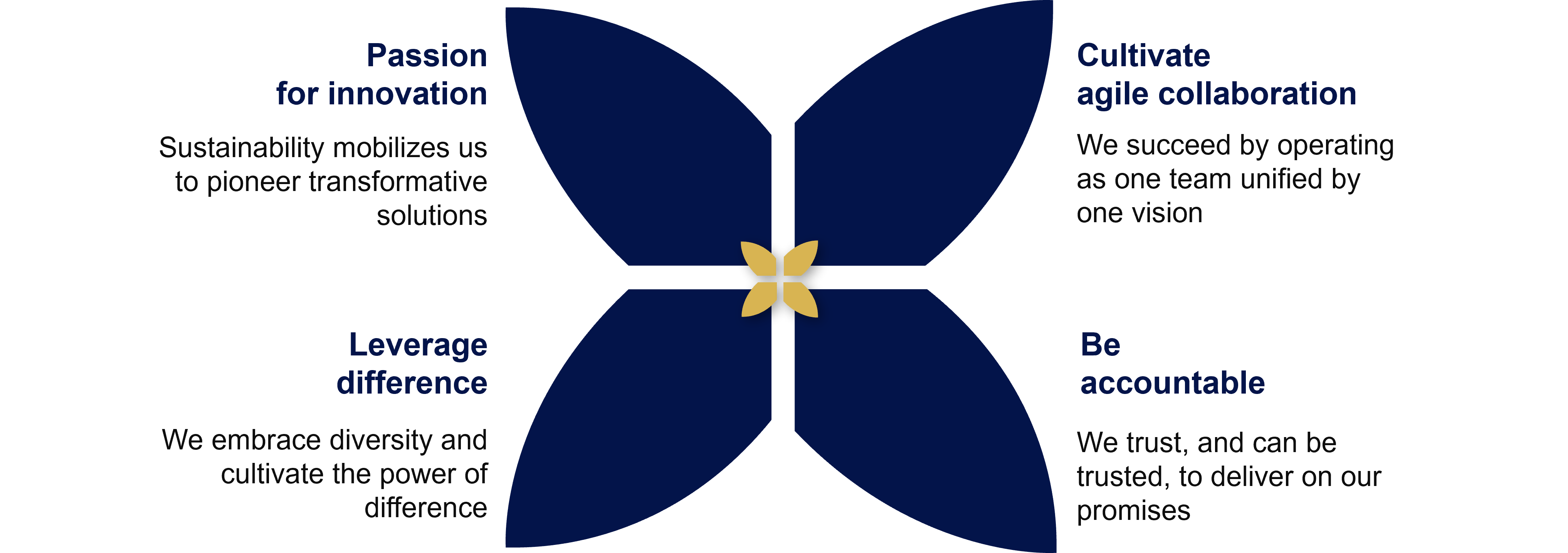 Our values are paramount in everything we do, both at work and outside, with our customers, contractors, vendors, suppliers, staff, friends, and families. They are part of who we are as a business and as human beings, regardless of what country we live in, where we come from or the brands we associate with. We hold ourselves and those around us accountable to champion these values.